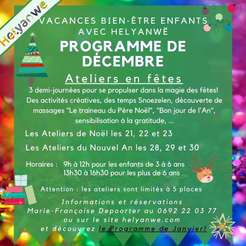 Stage et ateliers Helyanwë : Programme Vacances Décembre 2020 et Janvier 2021