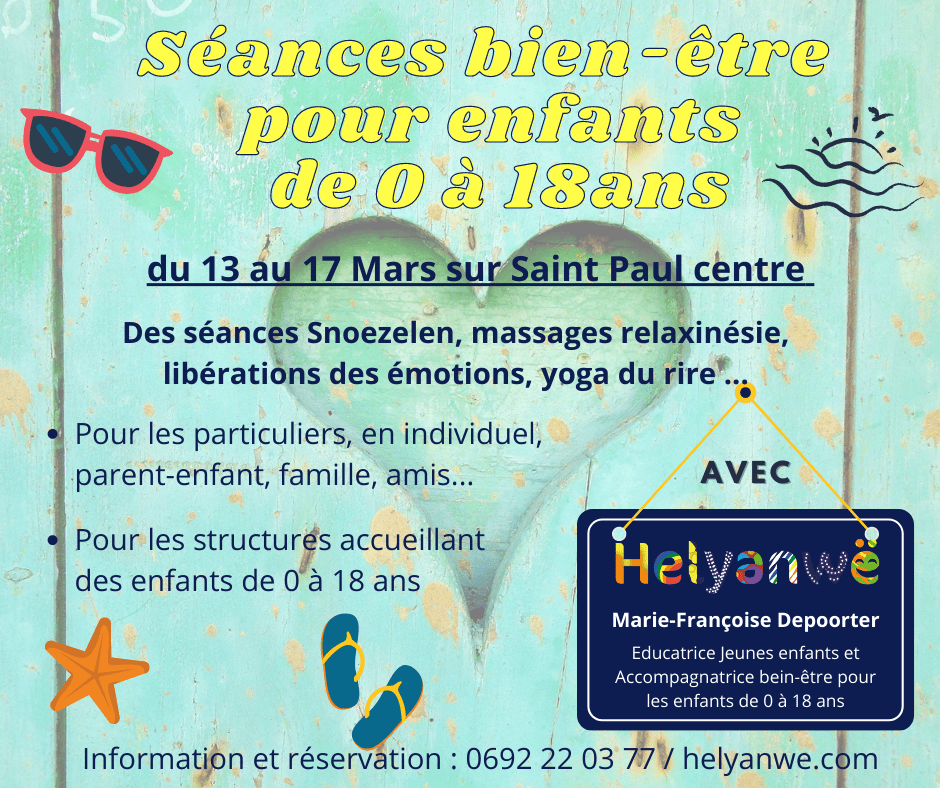 - La 1ère semaine des vacances est réservée aux structures et aux particuliers qui souhaitent vivre une séance Snoezelen ou Massage Relaxinésie® ou libération des émotions ou yoga du rire.