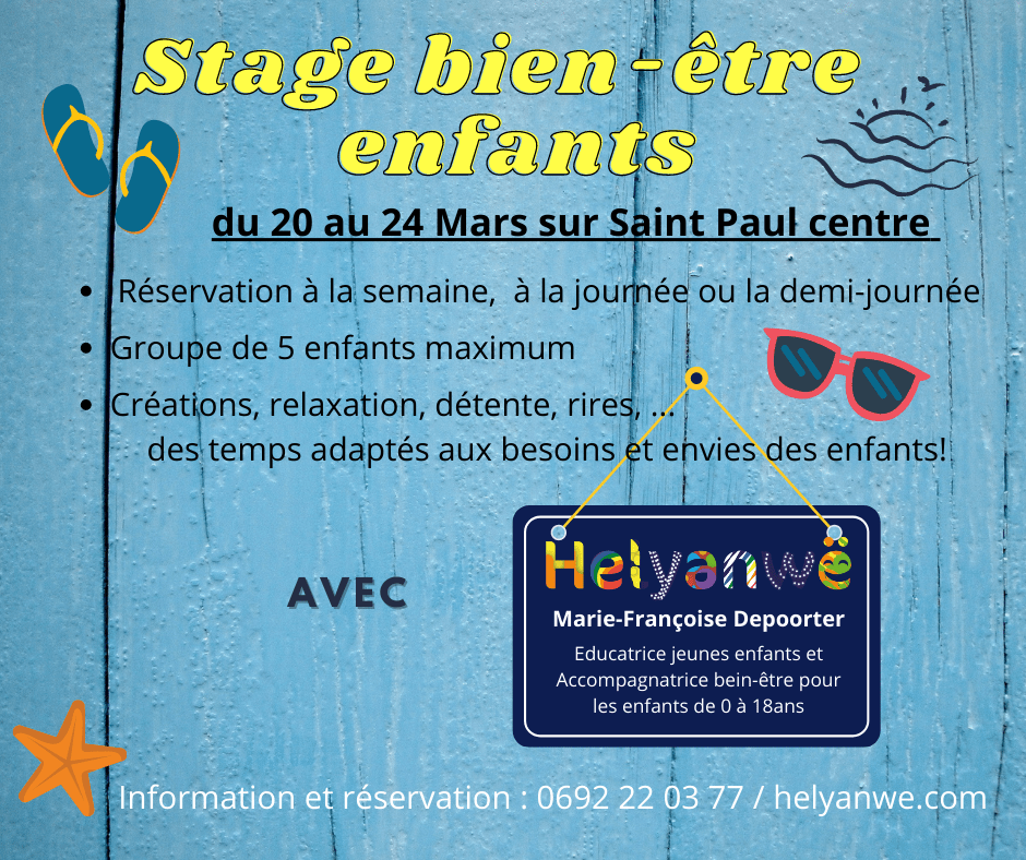 - La 2ème semaine est réservée au stage bien-être. Ce dernier est ouvert aux enfants de 3ans et plus et plus plus …