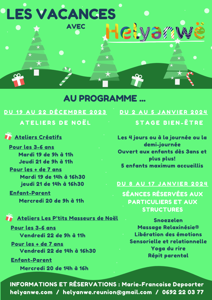 Voici le programme pour les vacances de Décembre 2023 et Janvier 2024!